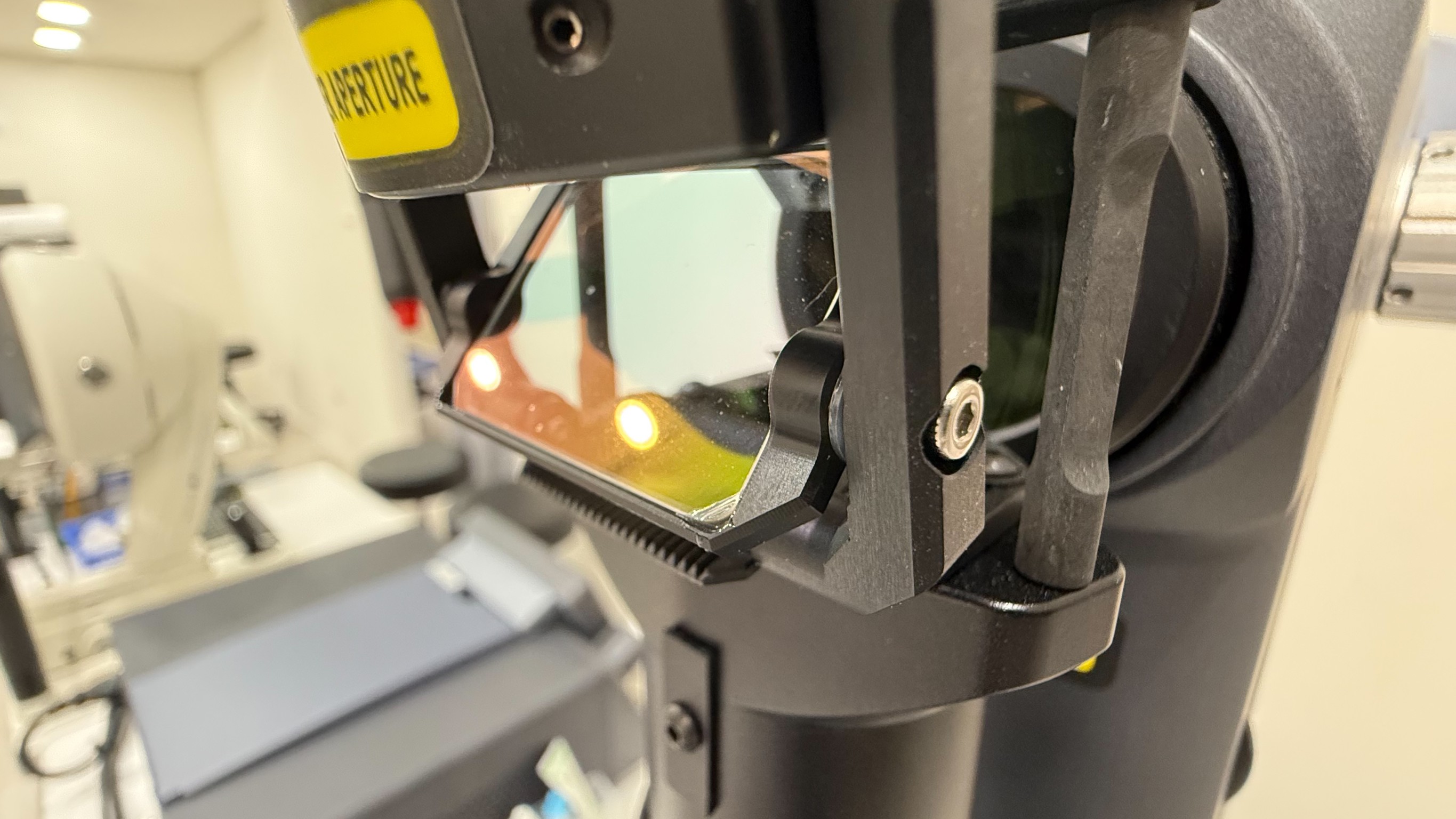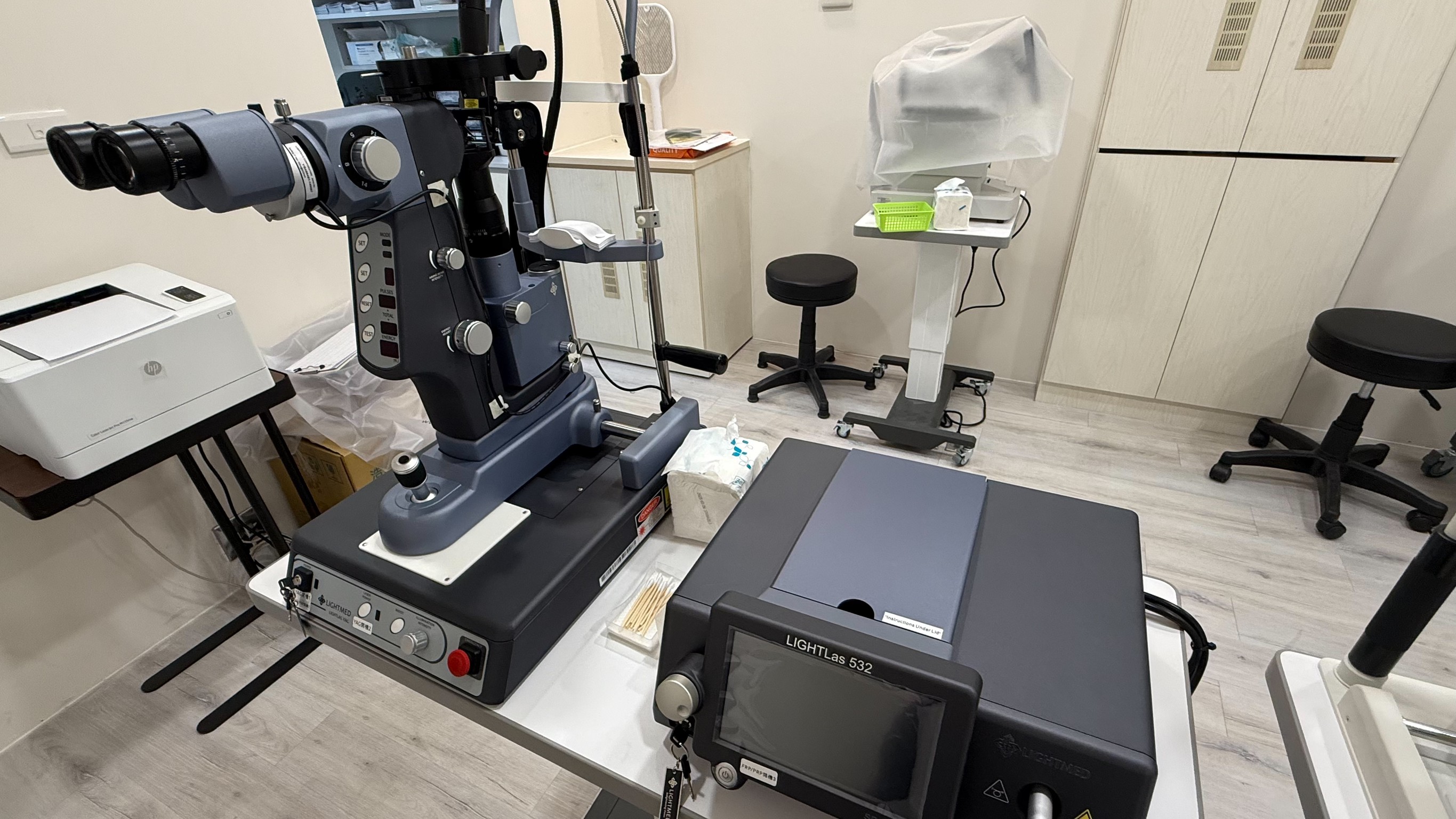 這是一台多功能眼科雷射儀器,利用 532 奈米的綠光雷射,針對不同眼科疾病進行治療。